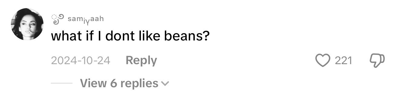 The theory comes from a viral video of a woman making bean soup with different types of beans to help women with period pain. The comments weren’t about technique or about saving the recipe, they were about substitutions… of the beans….. On a bean soup recipe video.