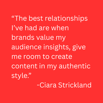 “The best relationships I’ve had are when brands value my audience insights, give me room to create content in my authentic style, and provide clear communication on expectations, timelines, and goals,” says Ciara Strickland, creator behind The New Mixx™ and former influencer strategist at Later.