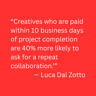 “Our in-house metrics within our organization indicate that creatives who are paid within 10 business days of project completion are 40% more likely to ask for a repeat collaboration,” says Luca Dal Zotto, Co-founder of Rent a Mac. “Timely and transparent payment is not negotiable.”